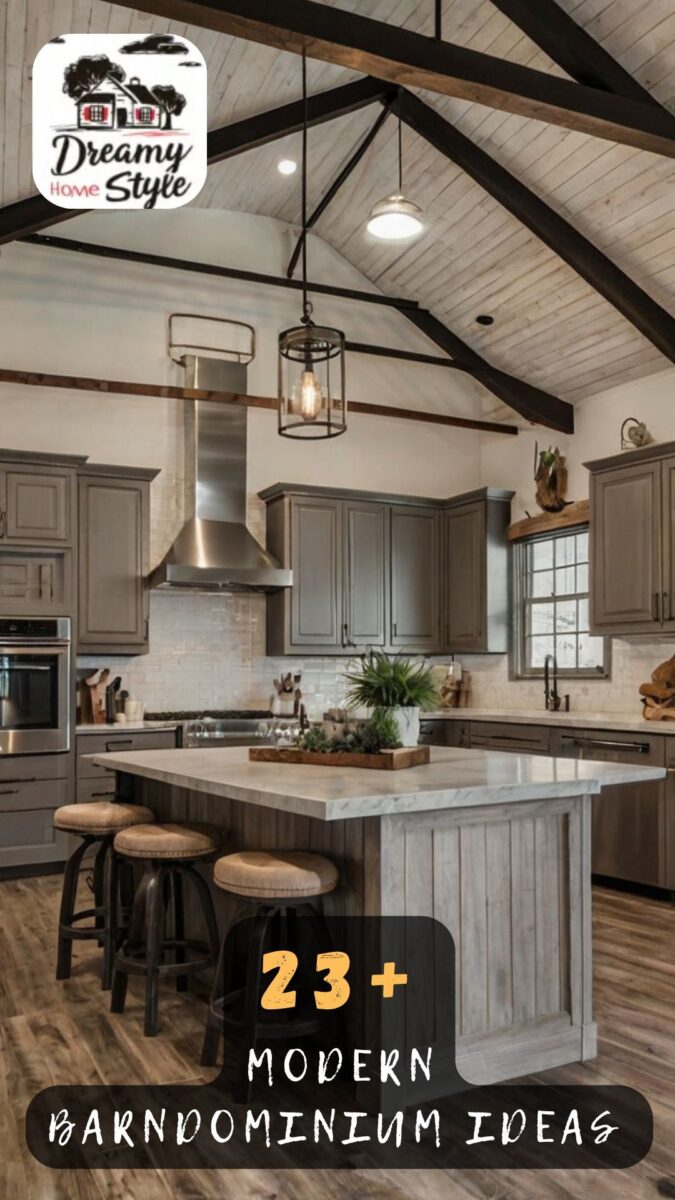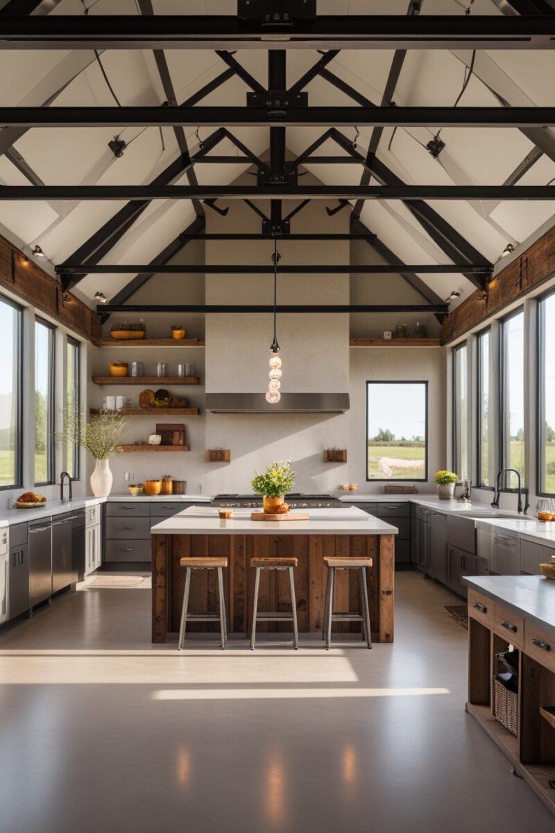 Industrial-chic kitchens in barndominiums work beautifully because they complement the structure’s natural aesthetic.