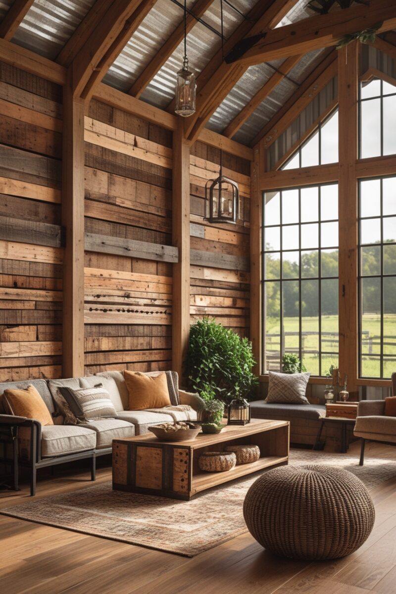 Accent walls made from reclaimed wood are my absolute favorite way to add character and warmth to a barndominium.