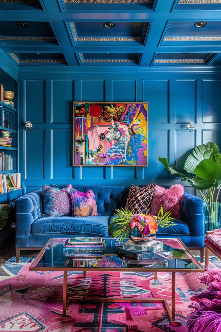 For example, a cobalt blue wall would look stunning with white or beige furniture and some natural wood tones.