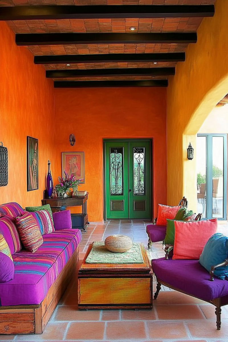 Mexican homes are known for their bold use of colors like terracotta, cobalt blue, sunflower yellow, and deep magenta.