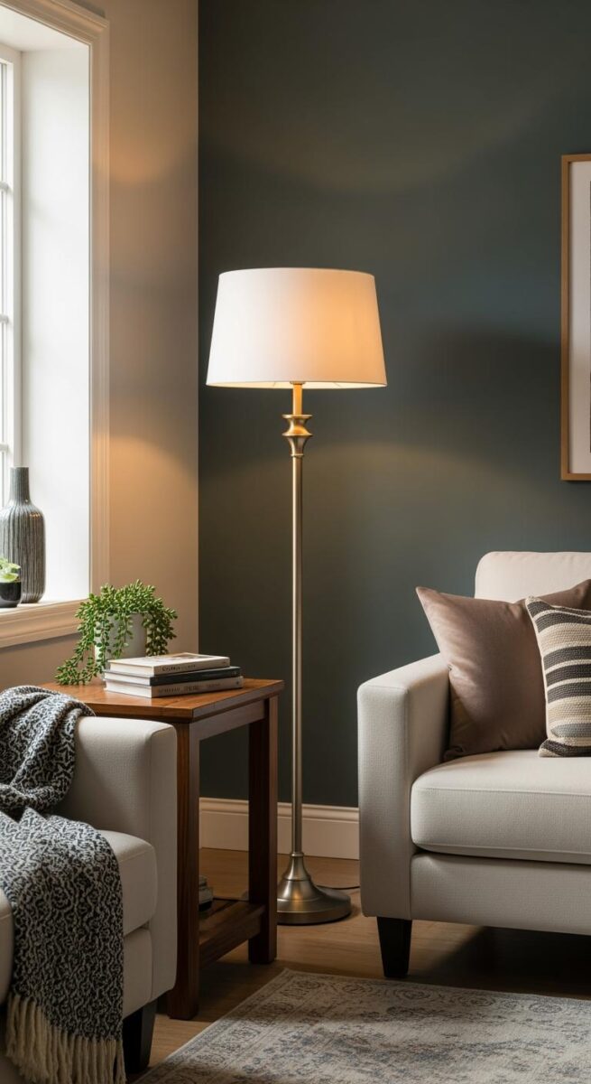 I’ve tried putting floor lamps behind furniture, next to the sofa, or even beside a plant to create a little spotlight effect.