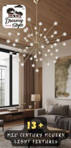 Incorporate sculptural lighting, abstract art, and statement greenery.