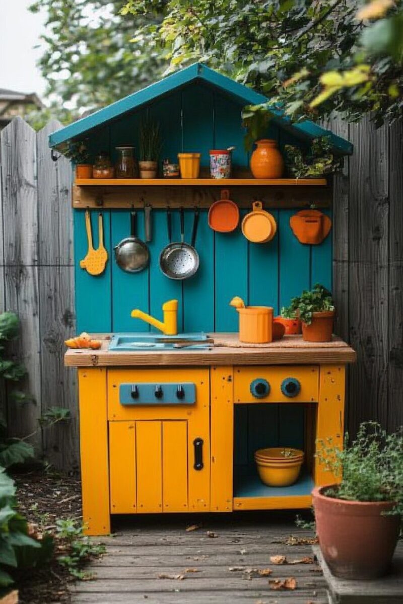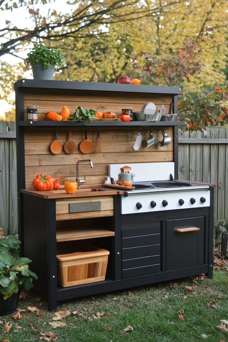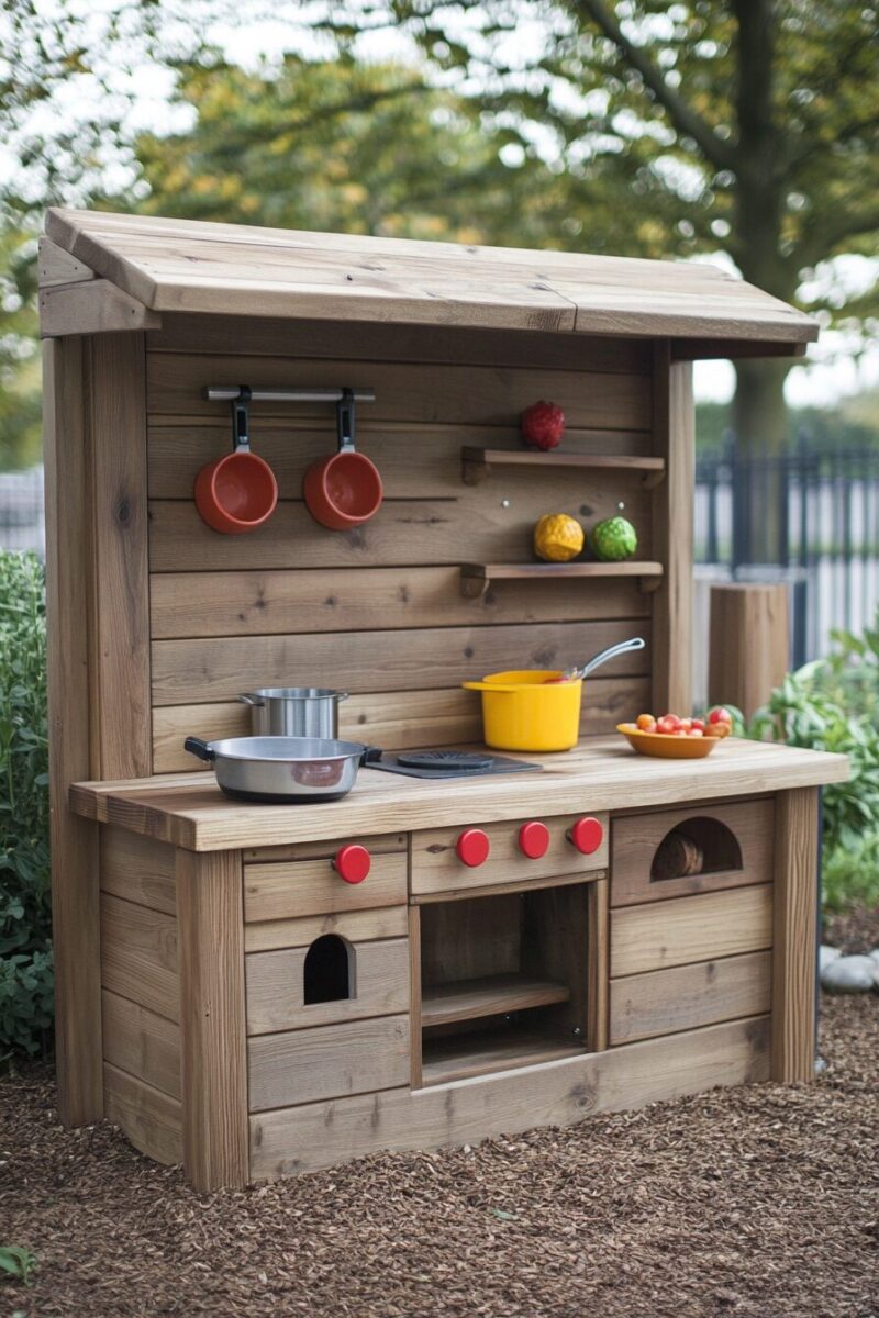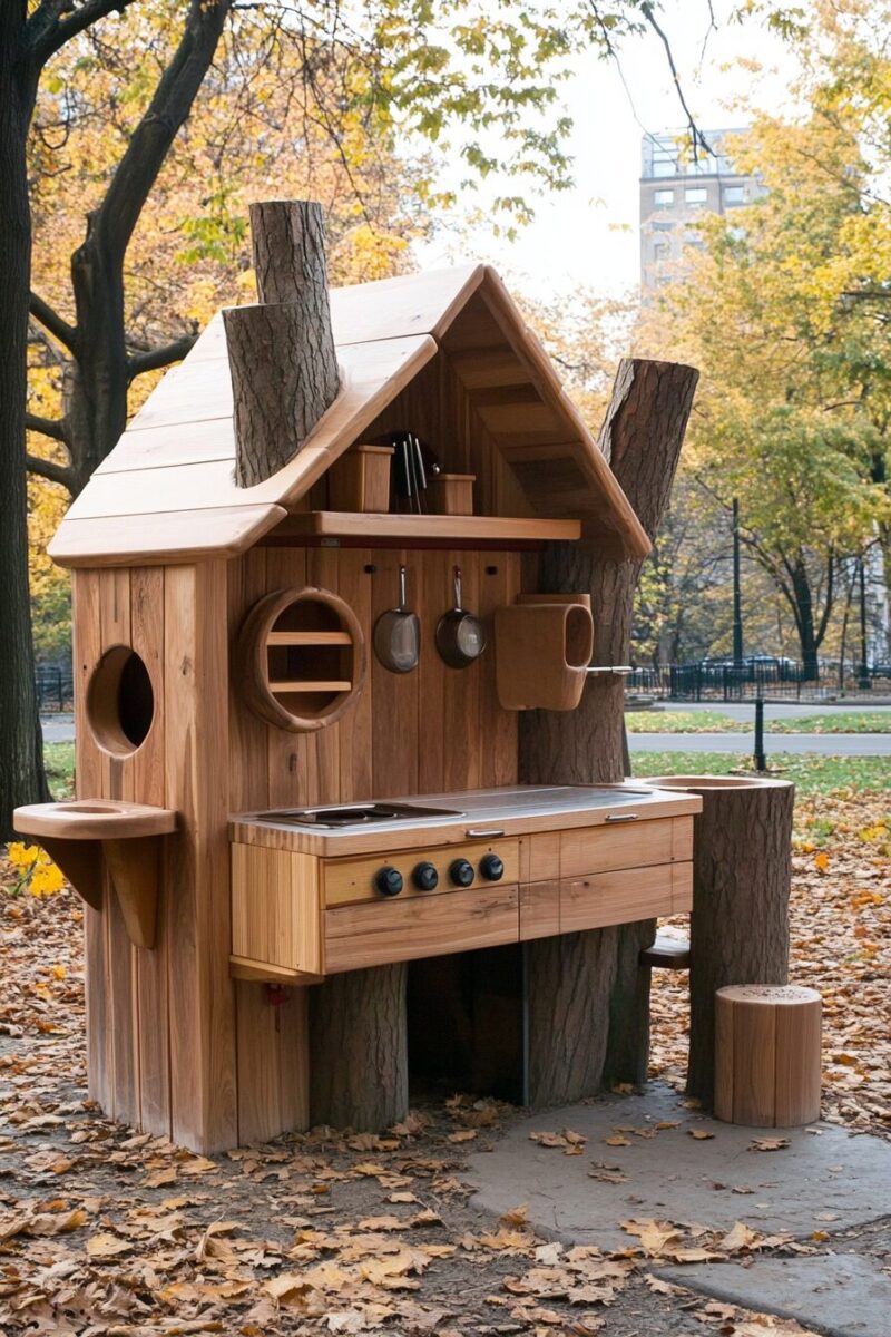 Weather shouldn’t limit outdoor play – create a mud kitchen specifically designed to transition seamlessly between seasons, offering year-round adventures.