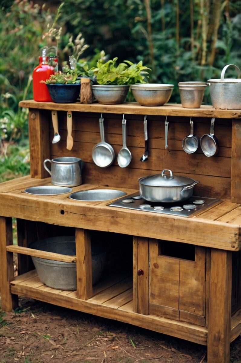 Add a “creation station” where children can build their own mud kitchen tools from clean discarded materials, fostering engineering skills and environmental consciousness.