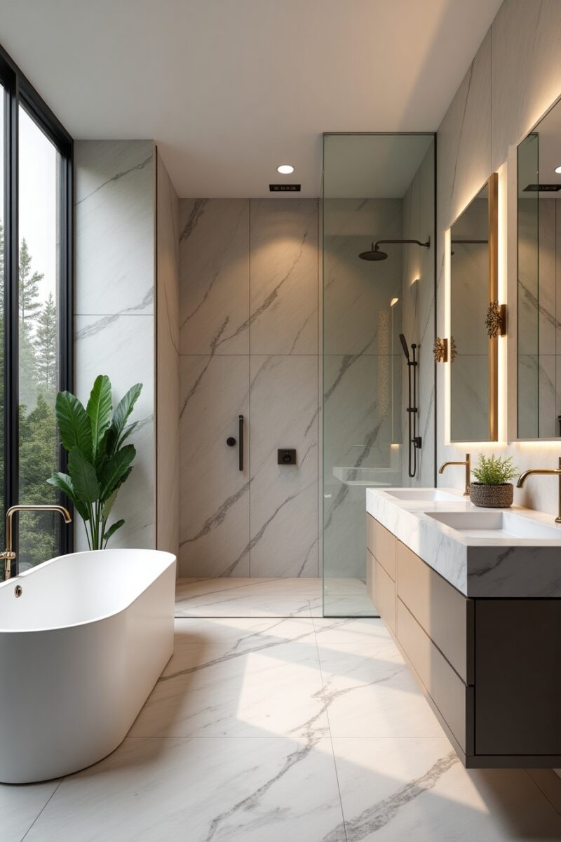 For a slightly more budget-friendly approach, consider marble-look porcelain tiles that deliver the aesthetic without the maintenance concerns.