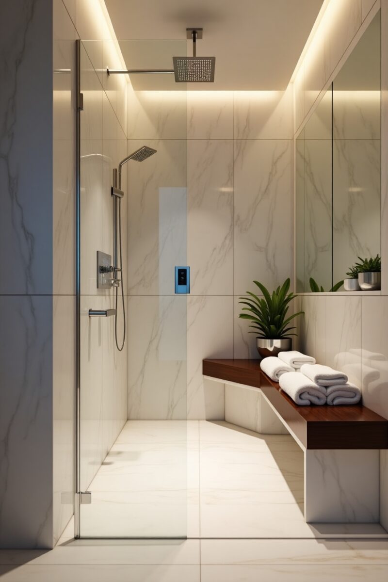 Towel warmers or heated towel bars positioned near the shower exit continue the experience of luxury after you turn off the water.