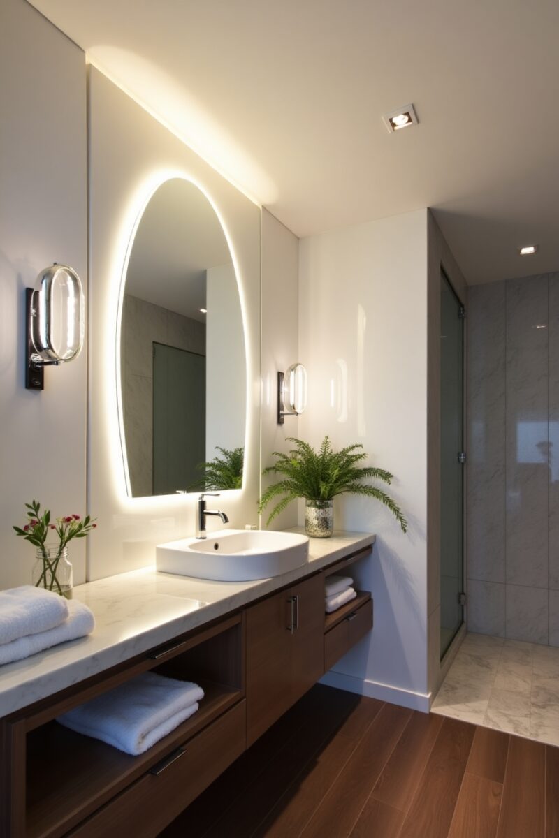 Wall sconces positioned at face height around mirrors provide the most flattering light for daily grooming routines.