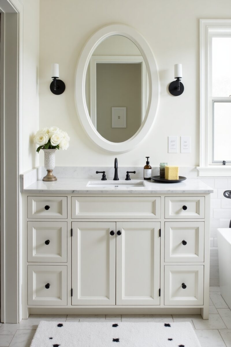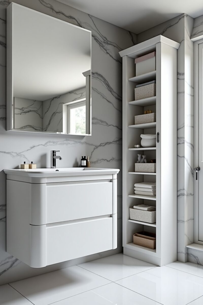 Complement these with white marble countertops featuring delicate gray veining for that upscale yet approachable vibe.