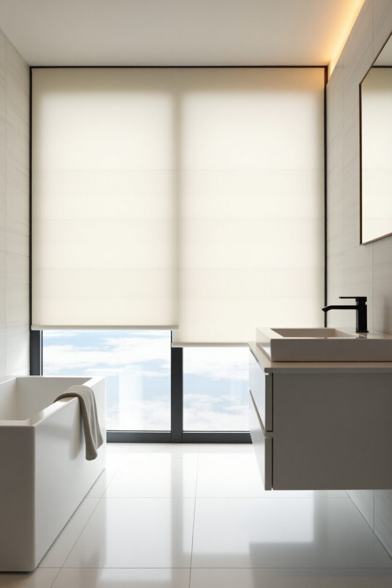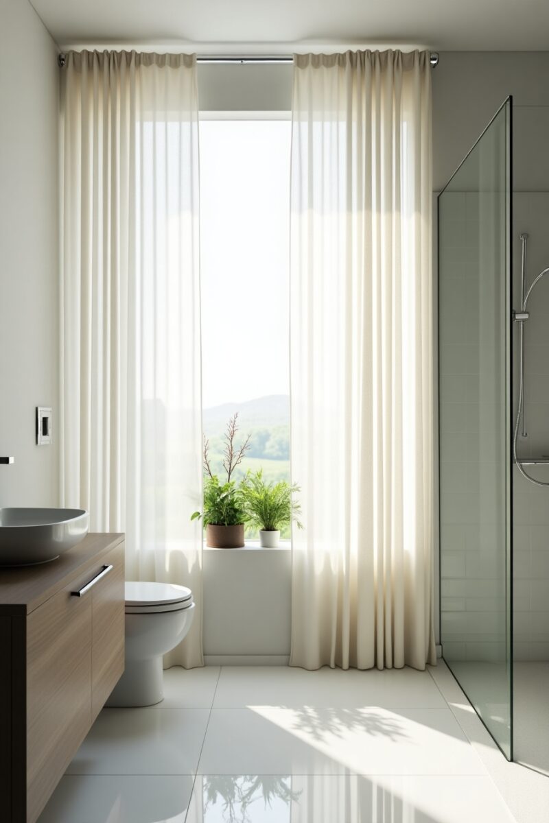 Consider simple linen roman shades in crisp white or soft ivory that filter light beautifully without blocking it entirely.
