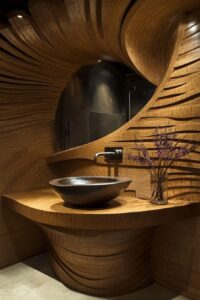 A wooden vanity – either in natural finish or painted – feels more furniture-like and less builder-grade than standard bathroom cabinetry.
