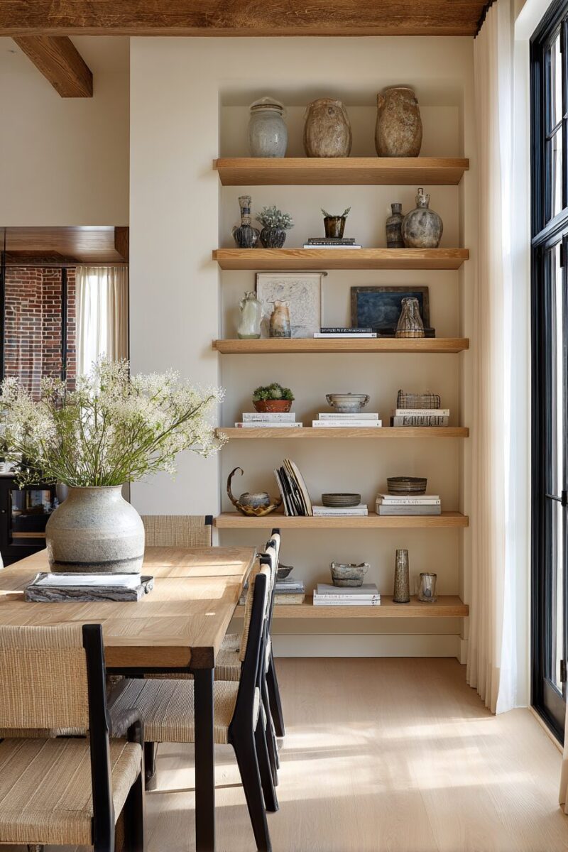 The beauty of open shelving lies in its flexibility – you can easily change your displays seasonally or when you acquire new pieces.