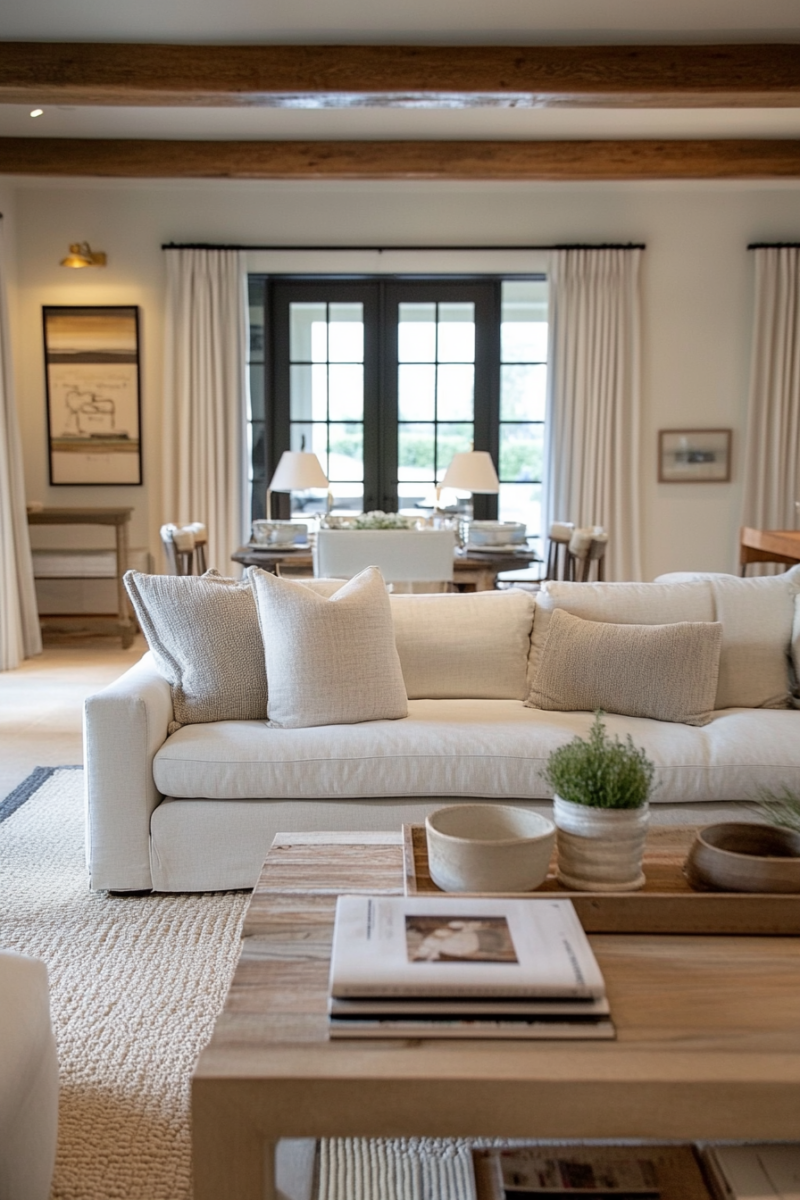 Let me walk you through a few Nancy Meyers-inspired living room ideas that can help you channel her iconic aesthetic in your own home: