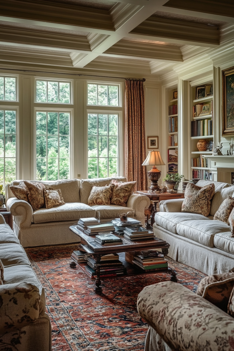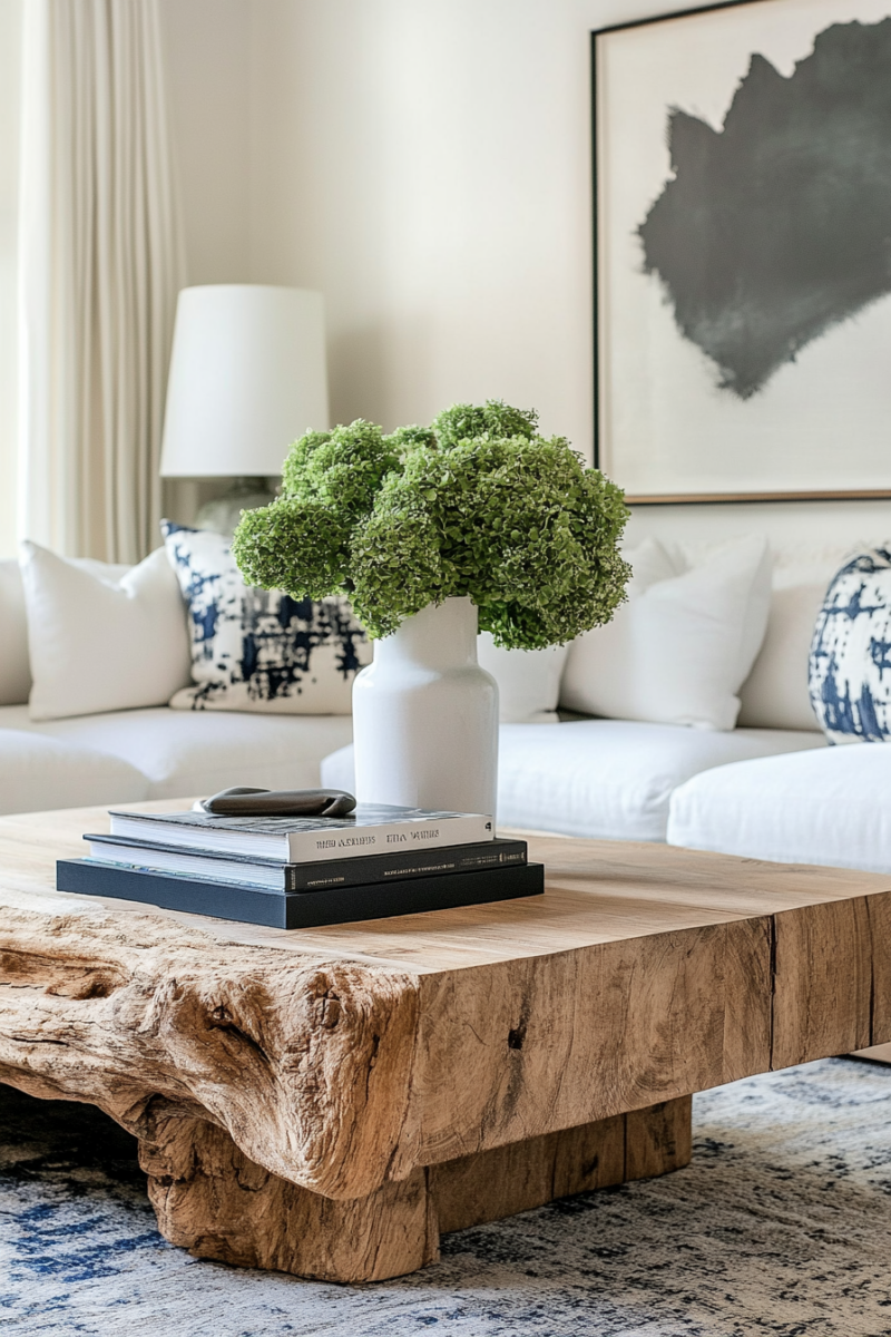A coffee table isn’t just a functional piece in a Nancy Meyers living room—it’s a centerpiece.