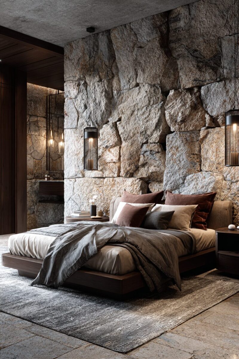 A collection of smooth river rocks in a wooden bowl on your nightstand provides a tactile, meditative focal point for bedtime rituals.