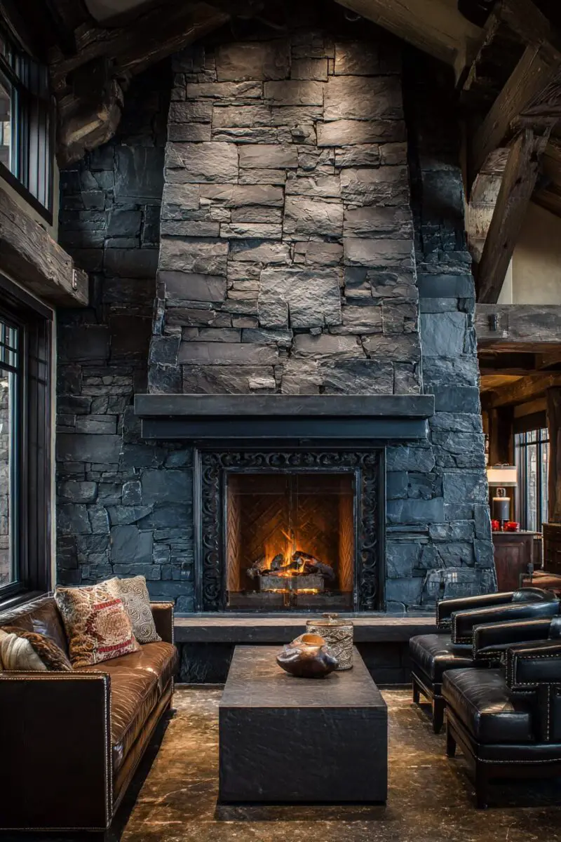 A floor-to-ceiling stacked slate fireplace creates this breathtaking effect by extending natural stone from the hearth all the way up to your ceiling.