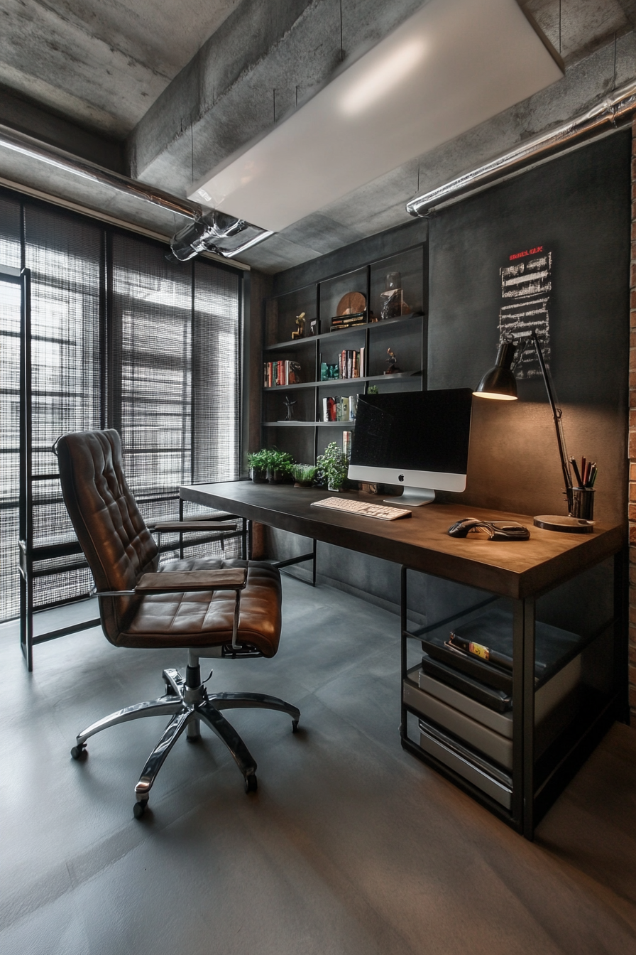 Incorporate sleek, utilitarian decor like desk accessories in matte metallics and minimal artwork in black and white.