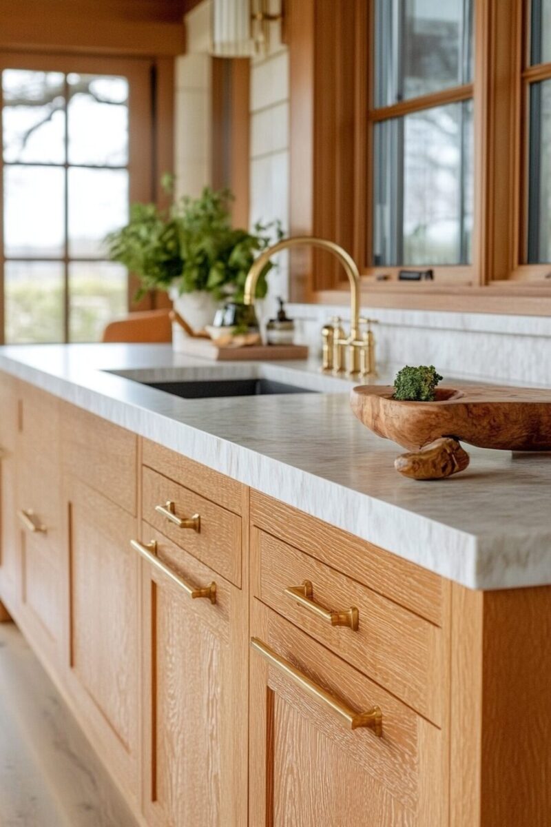 This finish complements natural stone countertops particularly well, creating a harmonious blend of organic textures.