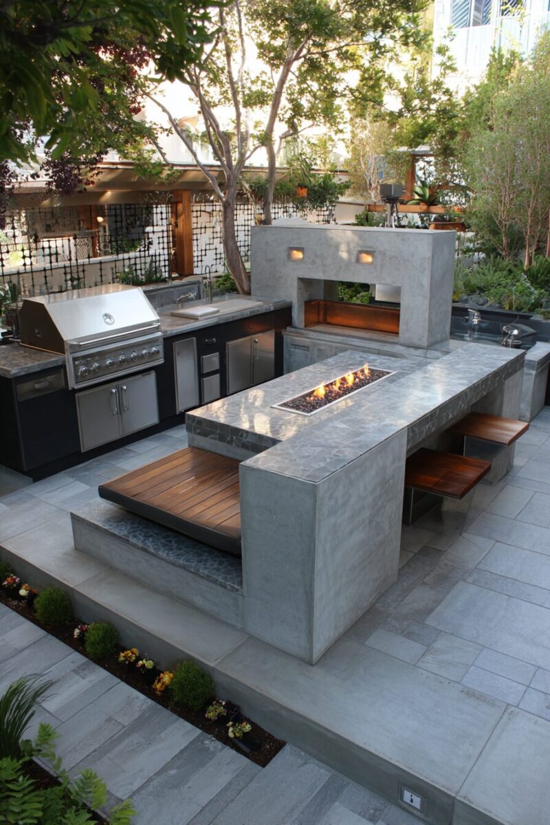 Combining a fire pit with cooking capabilities creates a focal point that provides warmth, ambiance, and culinary functionality.