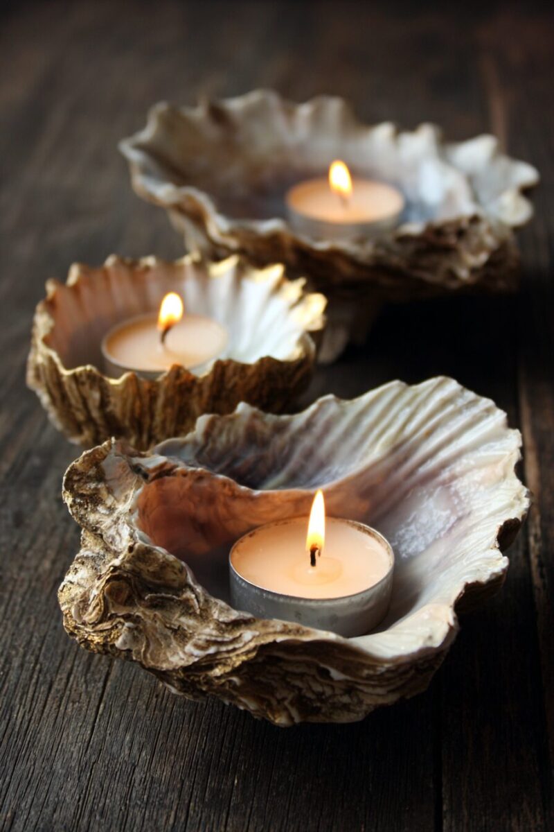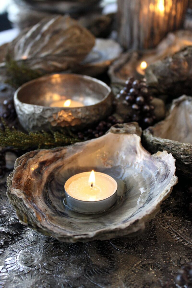 Nothing says coastal romance quite like candlelight flickering from within natural oyster shells scattered around your home.