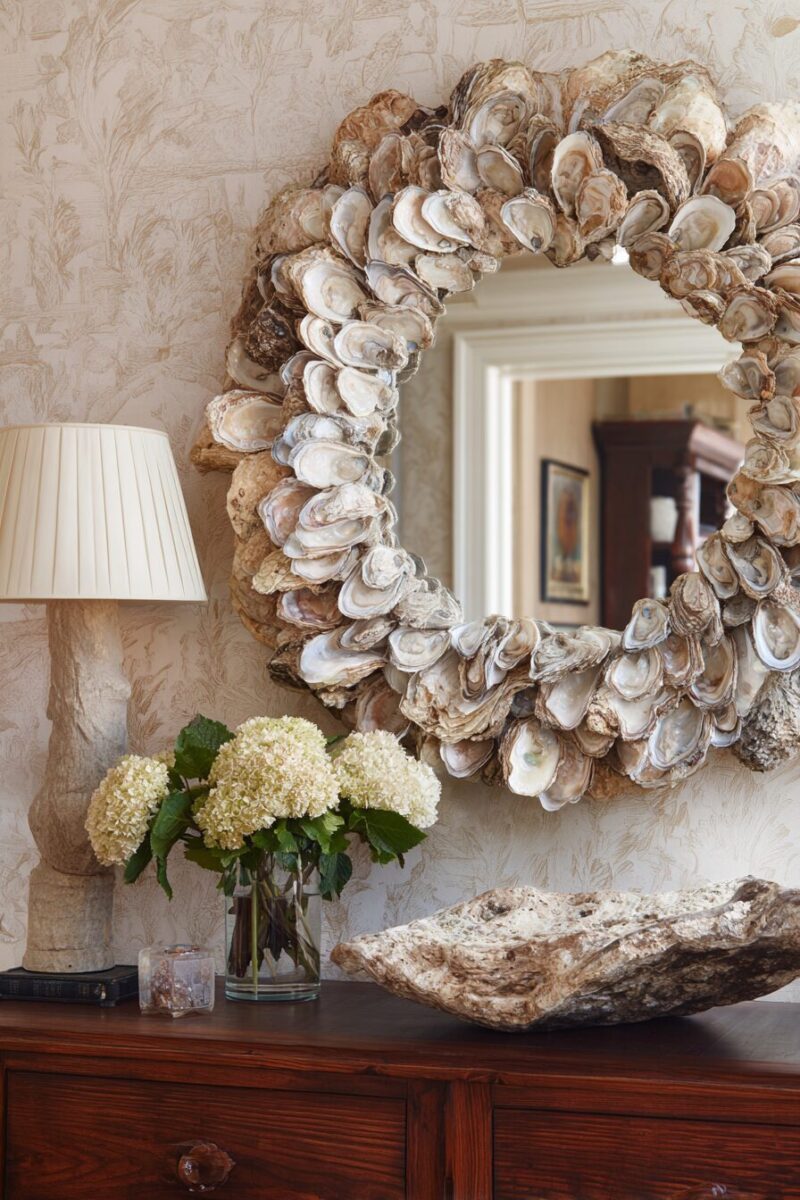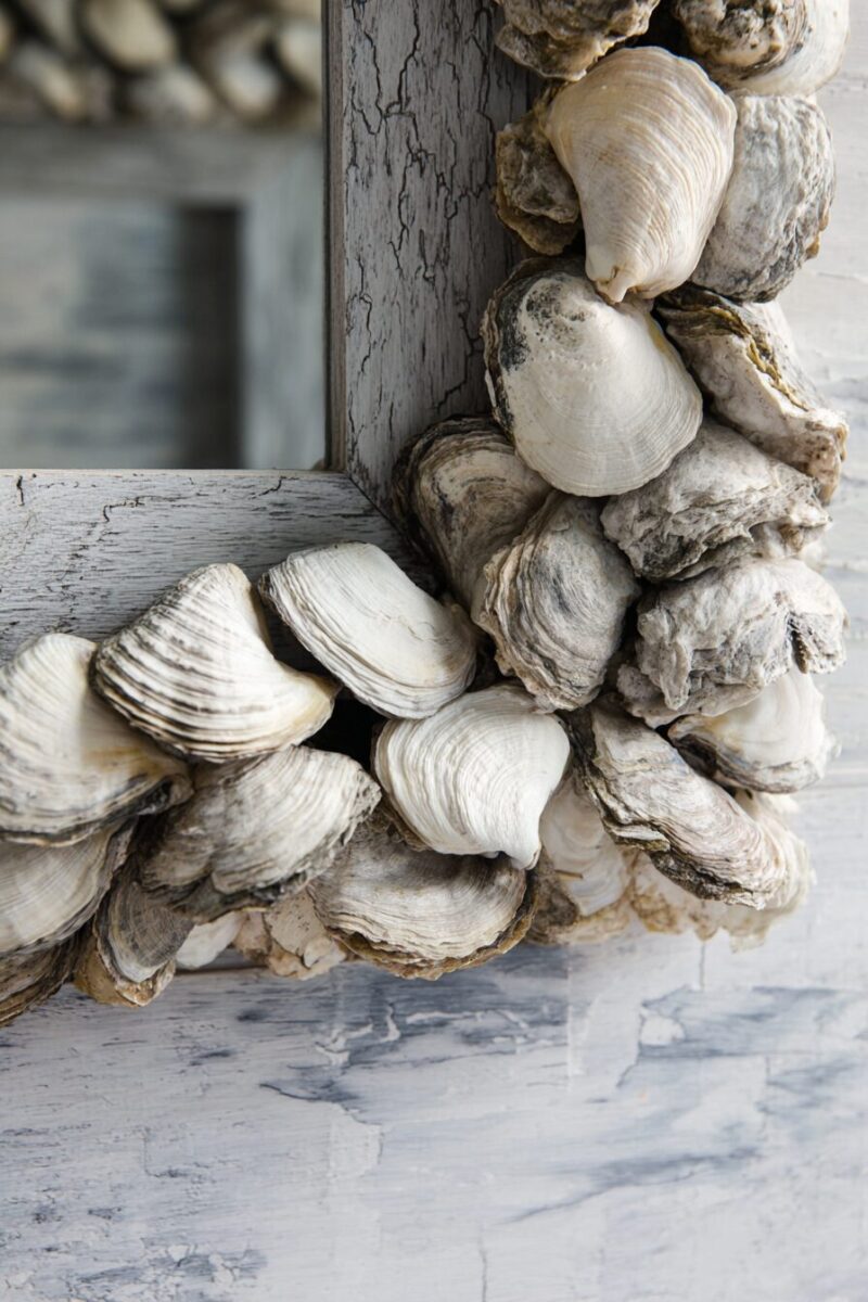 Your bathroom or entryway mirror is about to become the focal point everyone talks about when you surround it with carefully arranged oyster shells.
