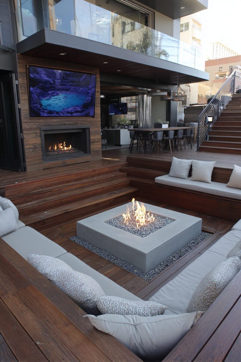 Transform your deck into the ultimate gathering spot with a built-in fire pit that becomes the heart of every outdoor celebration.