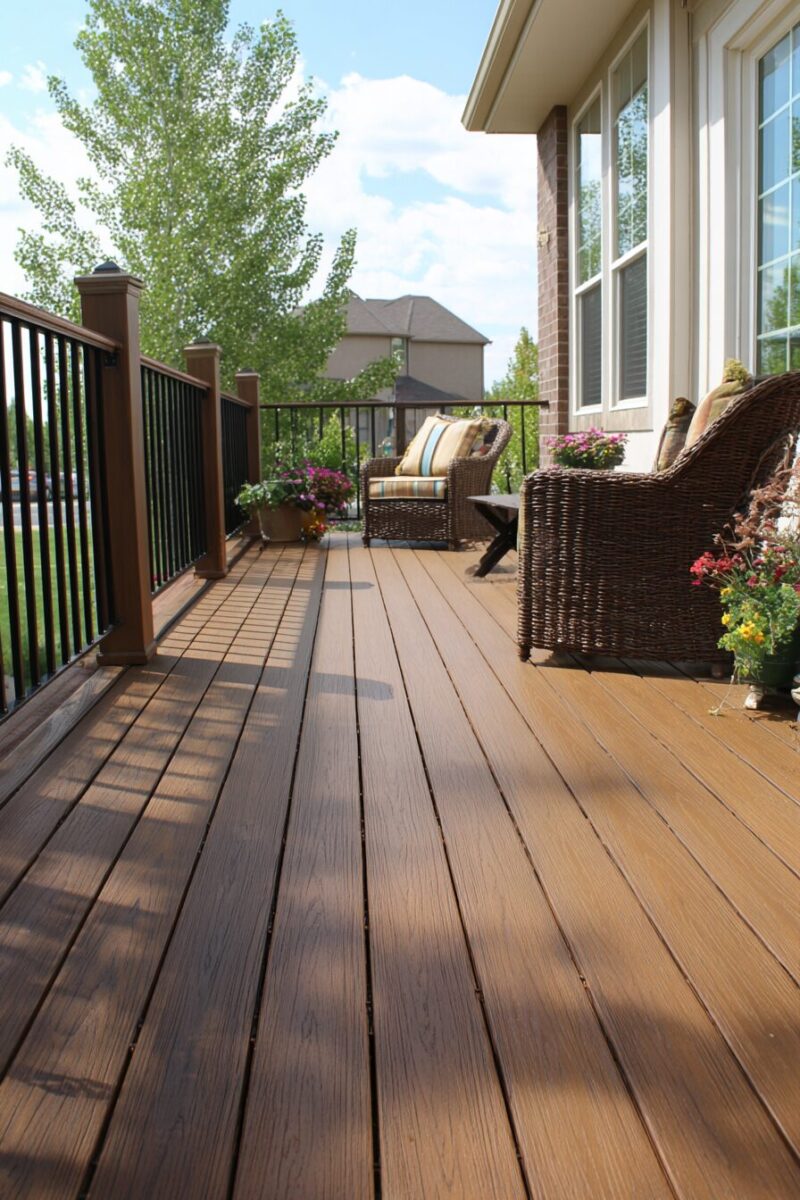 Modern composite materials come in sophisticated colors that capture the natural beauty of exotic hardwoods without the environmental impact.