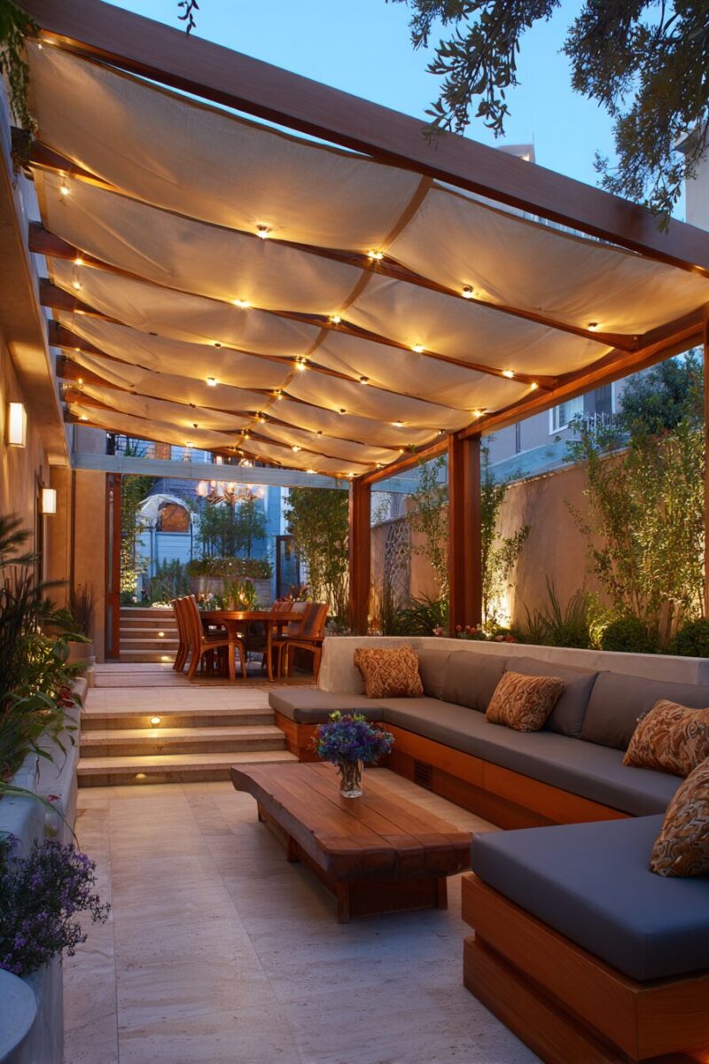 String light canopies instantly transform any patio into a magical space that feels both intimate and expansive at the same time.