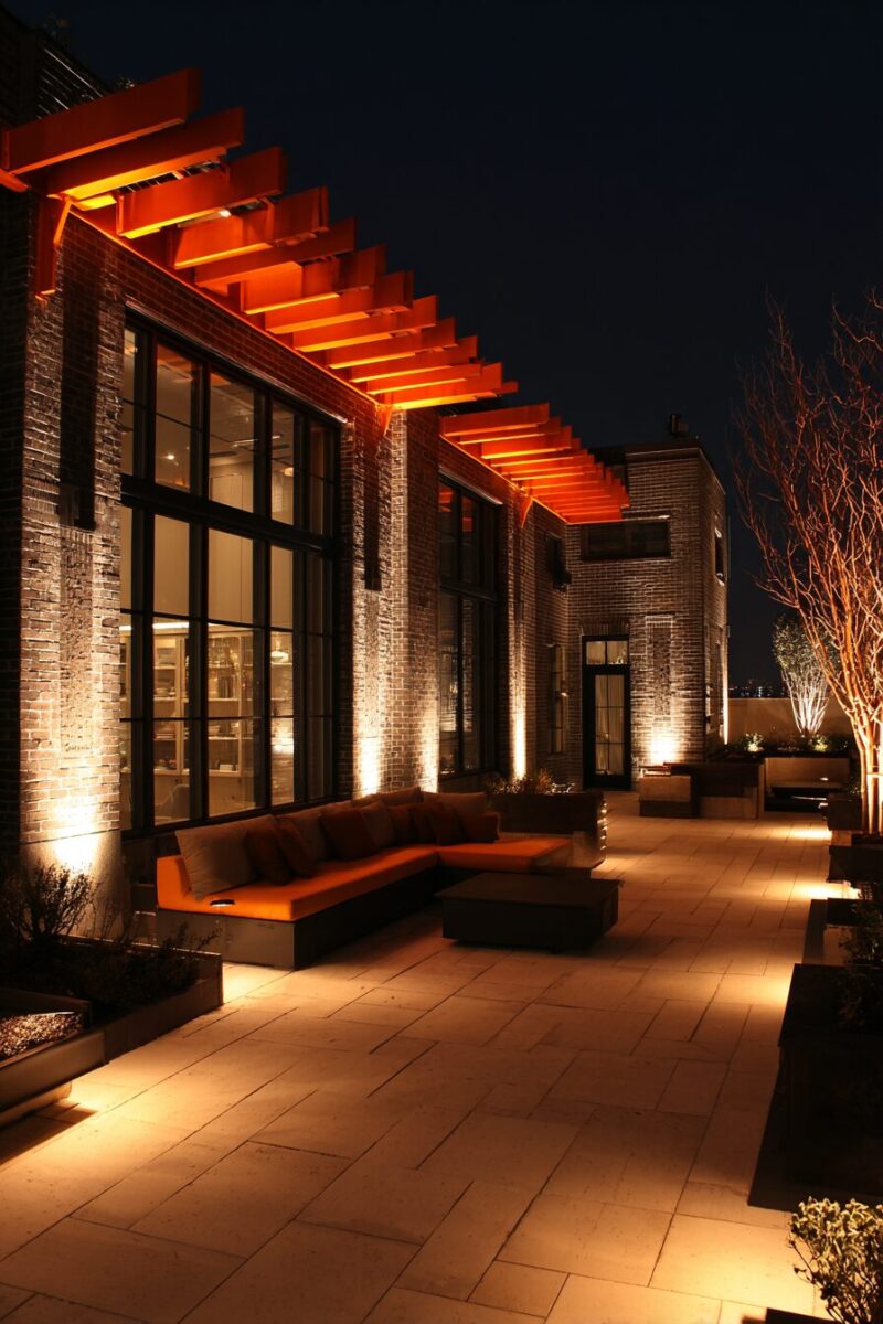 This sophisticated approach to illumination emphasizes your patio’s design features while creating a mysterious ambient glow that transforms ordinary architectural elements into extraordinary visual experiences.