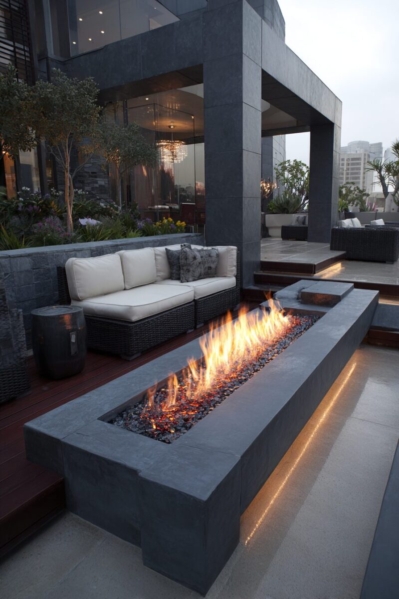 Modern fire tables brilliantly combine the mesmerizing quality of flames with practical surface space for drinks and appetizers, making them particularly perfect for entertainment-focused patios.