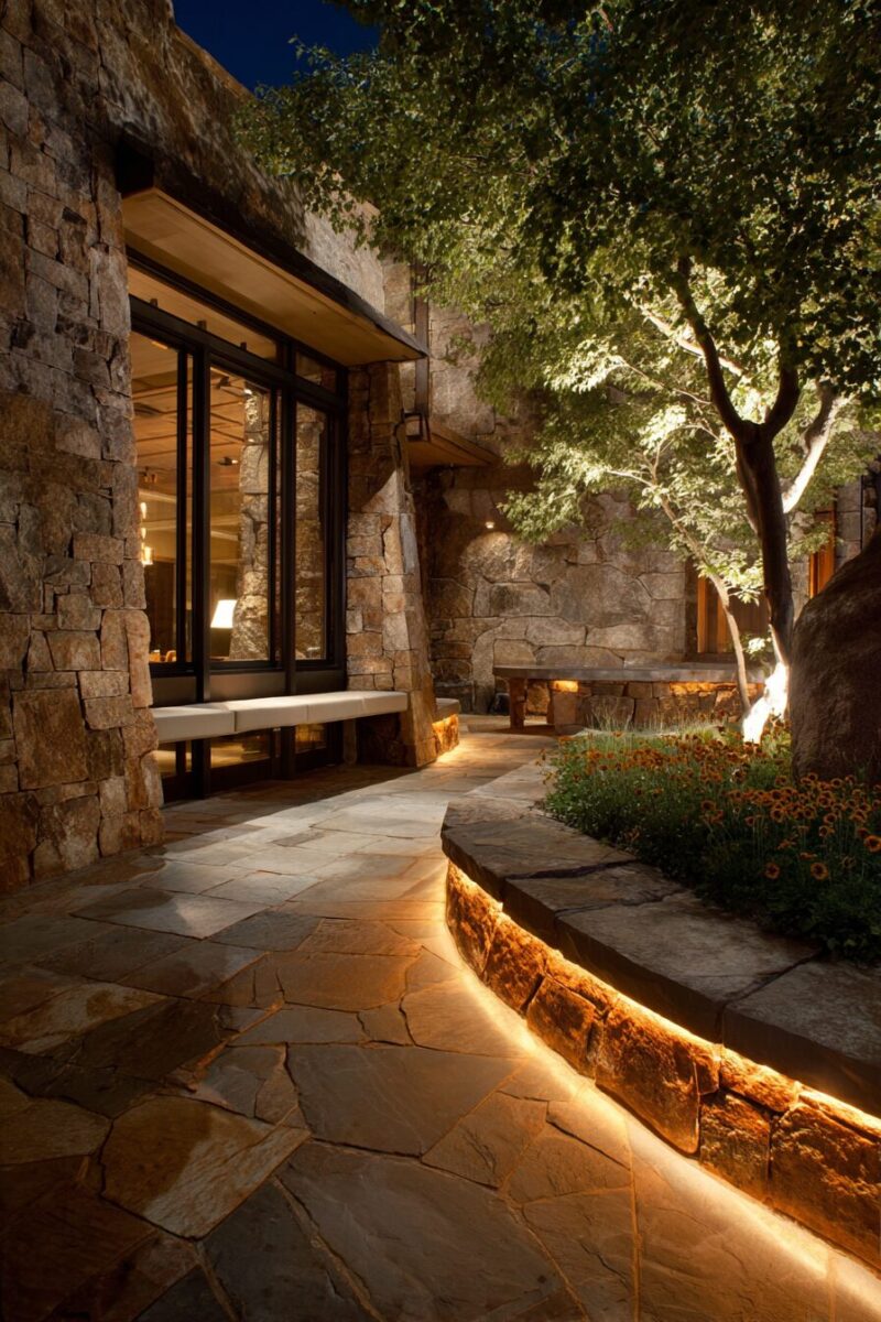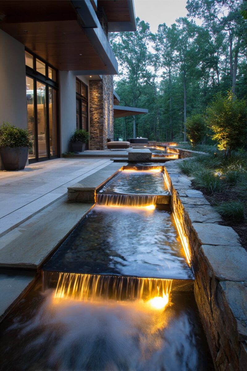 Combining water features with strategic lighting creates mesmerizing effects that engage multiple senses, as the sound of flowing water complements the visual dance of light on moving liquid surfaces.