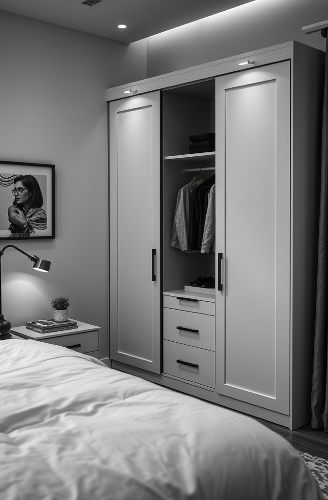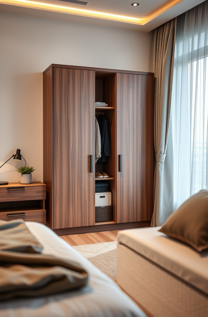 If your room gets abundant natural light, this darker wardrobe choice absorbs some brightness, creating a more balanced, relaxing atmosphere perfect for a bedroom retreat.