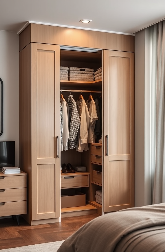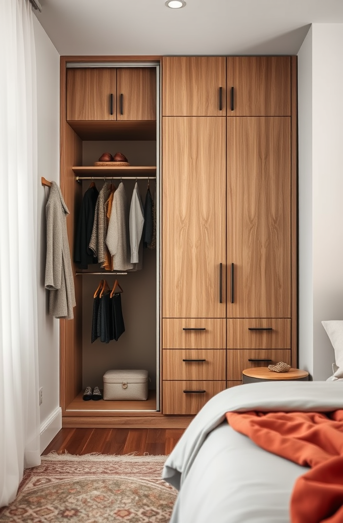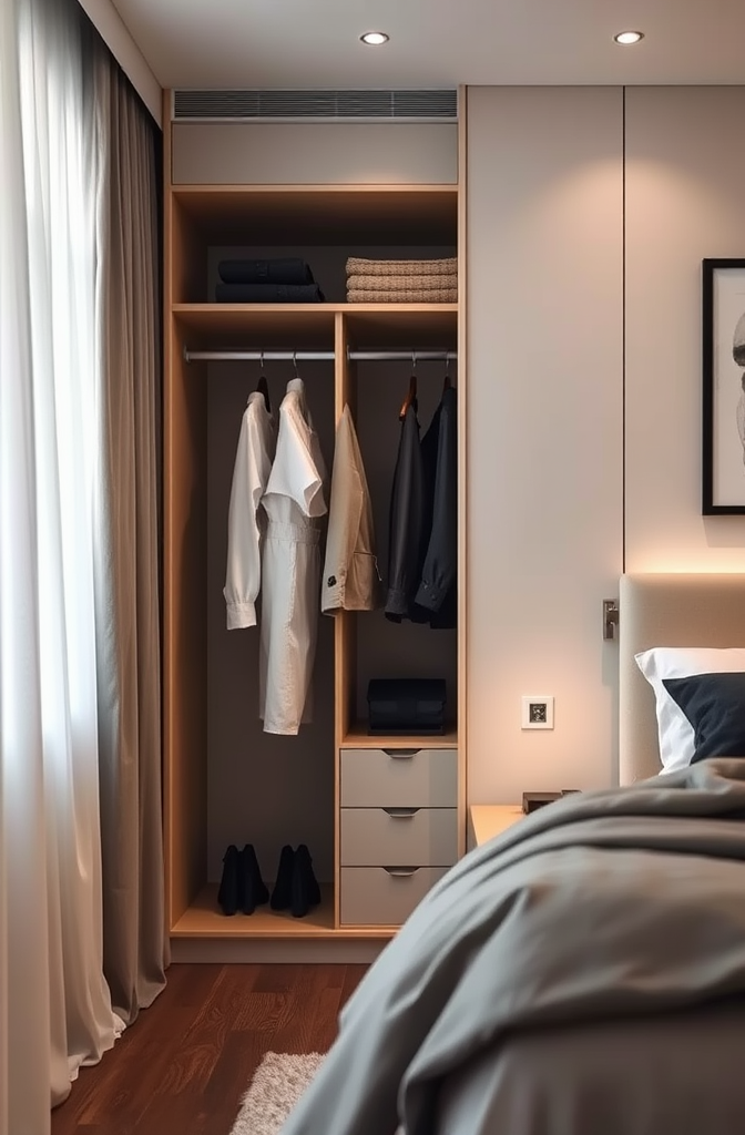 The key to making this look sophisticated rather than messy is committing to a cohesive color palette within your clothing collection – think neutral basics with perhaps one or two accent colors that complement your bedroom decor.