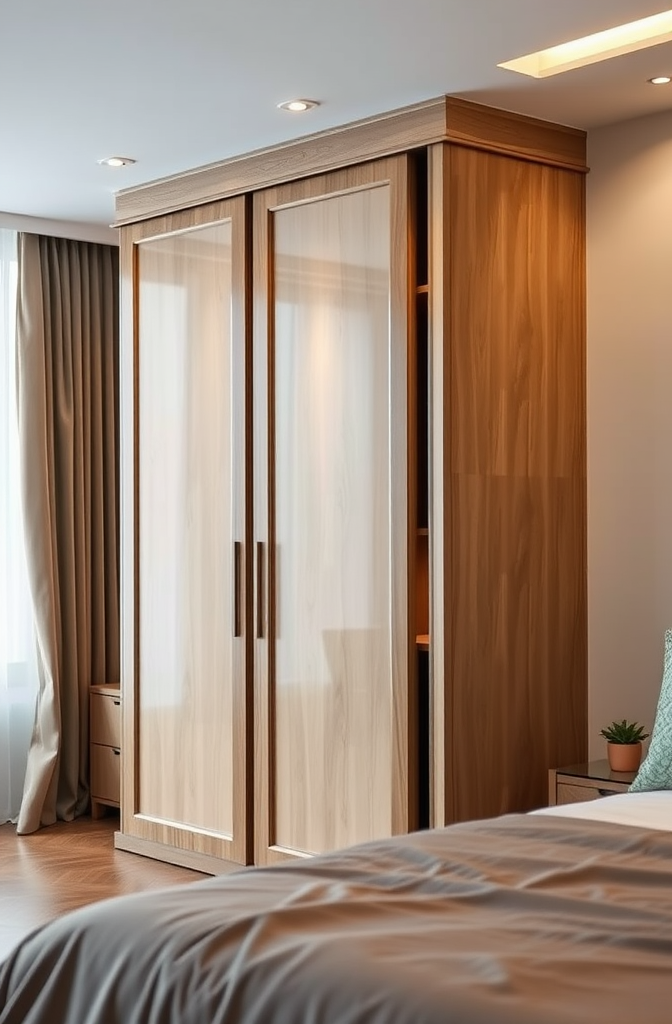 For those who choose glass or partially glass doors, strategic interior lighting creates a beautiful glowing effect even when closed, adding ambient light to the entire bedroom.