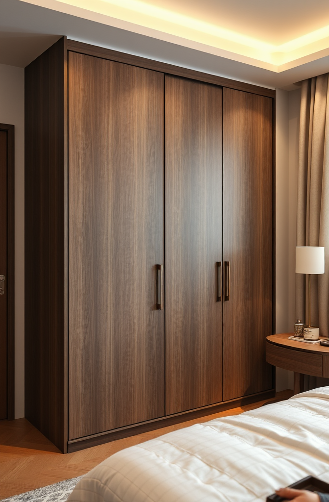 There’s something undeniably sophisticated about a dark wardrobe that anchors a bedroom with its commanding presence.