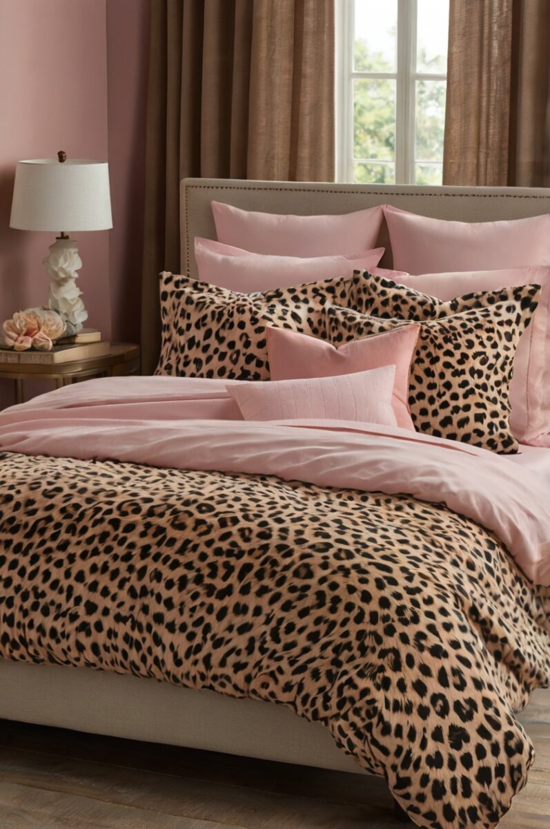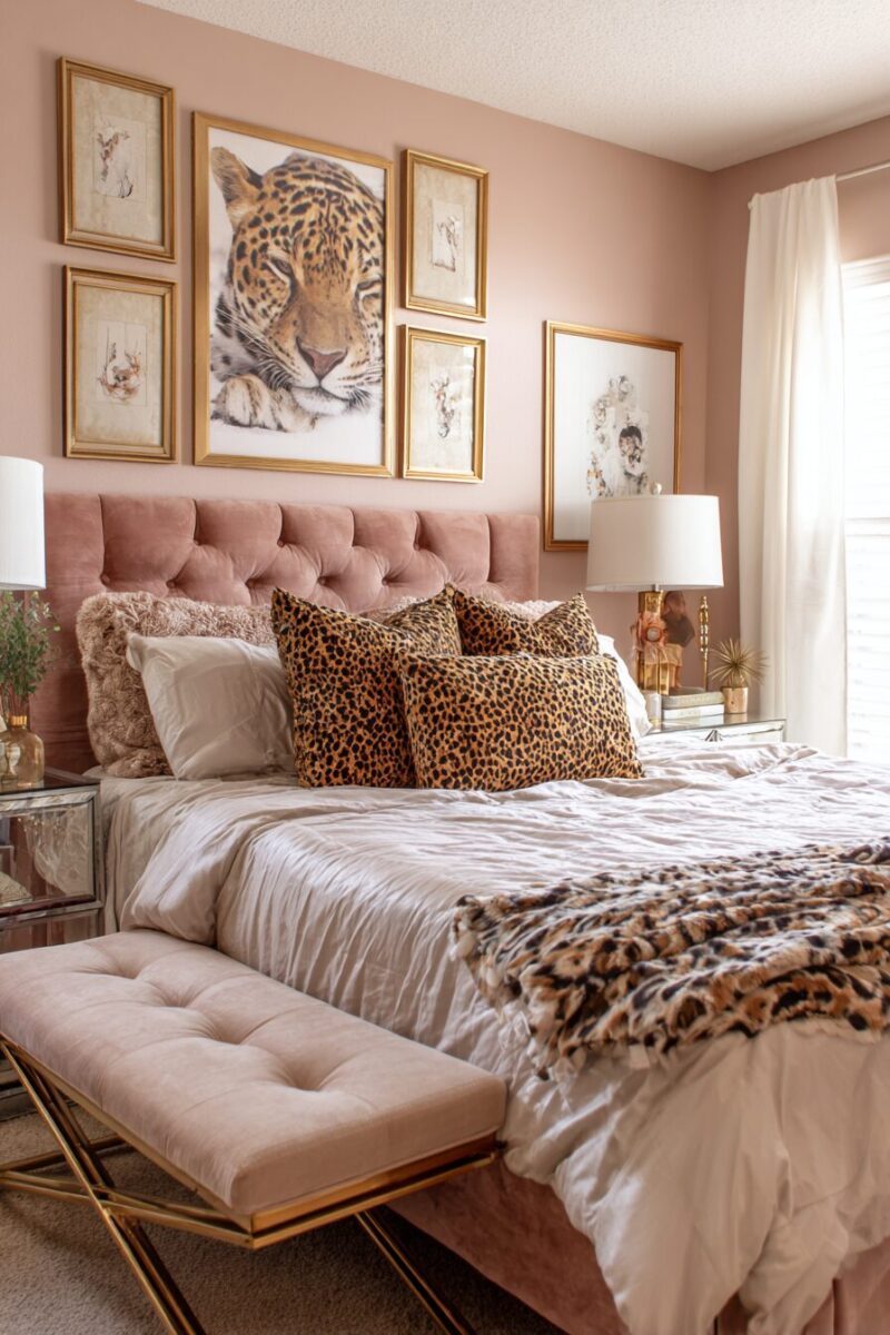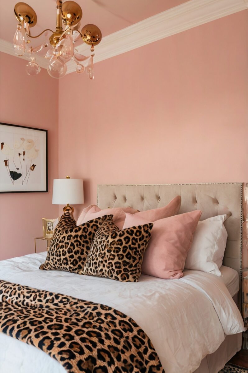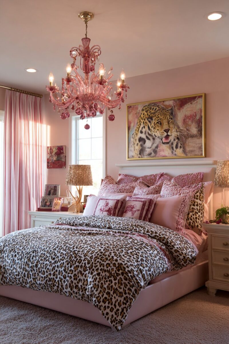 There’s something magical about pairing soft, dreamy pink with bold cheetah print in a bedroom.