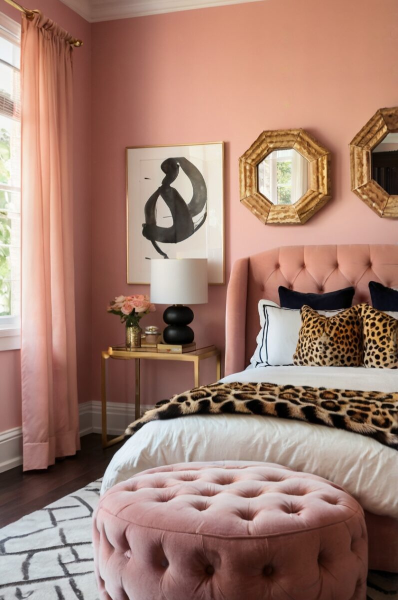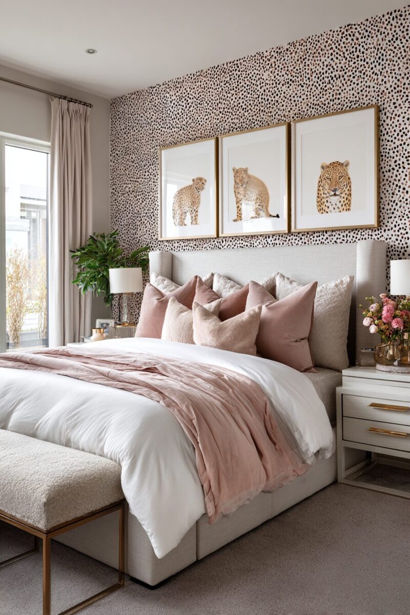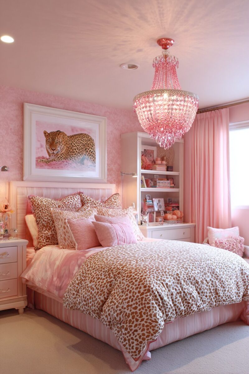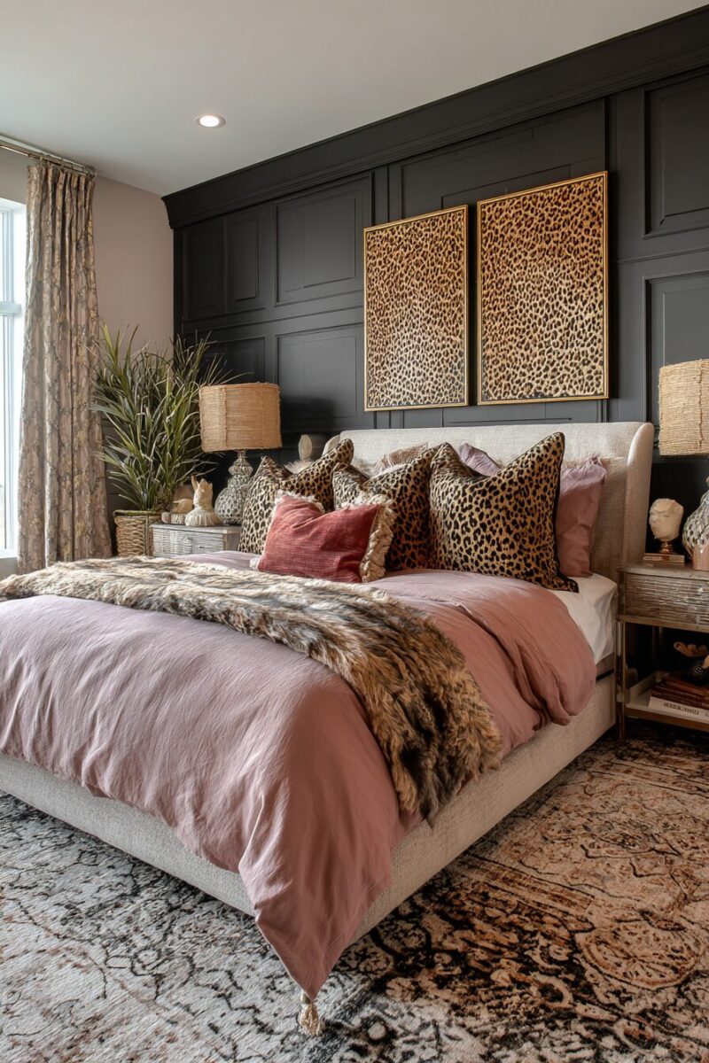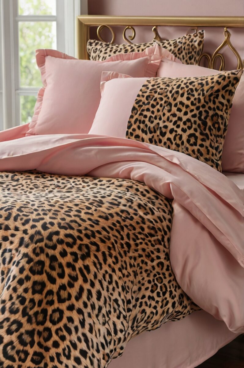 There’s something magical about pairing soft, dreamy pink with bold cheetah print in a bedroom.