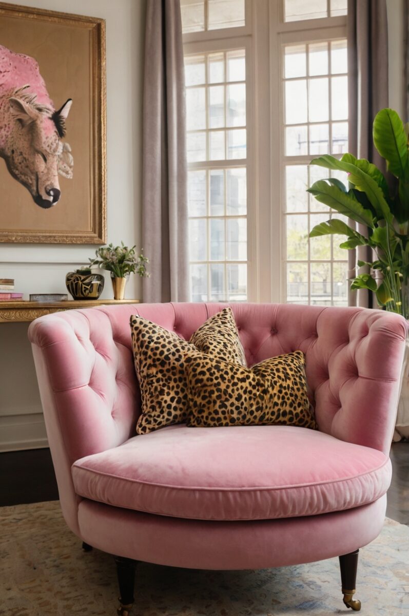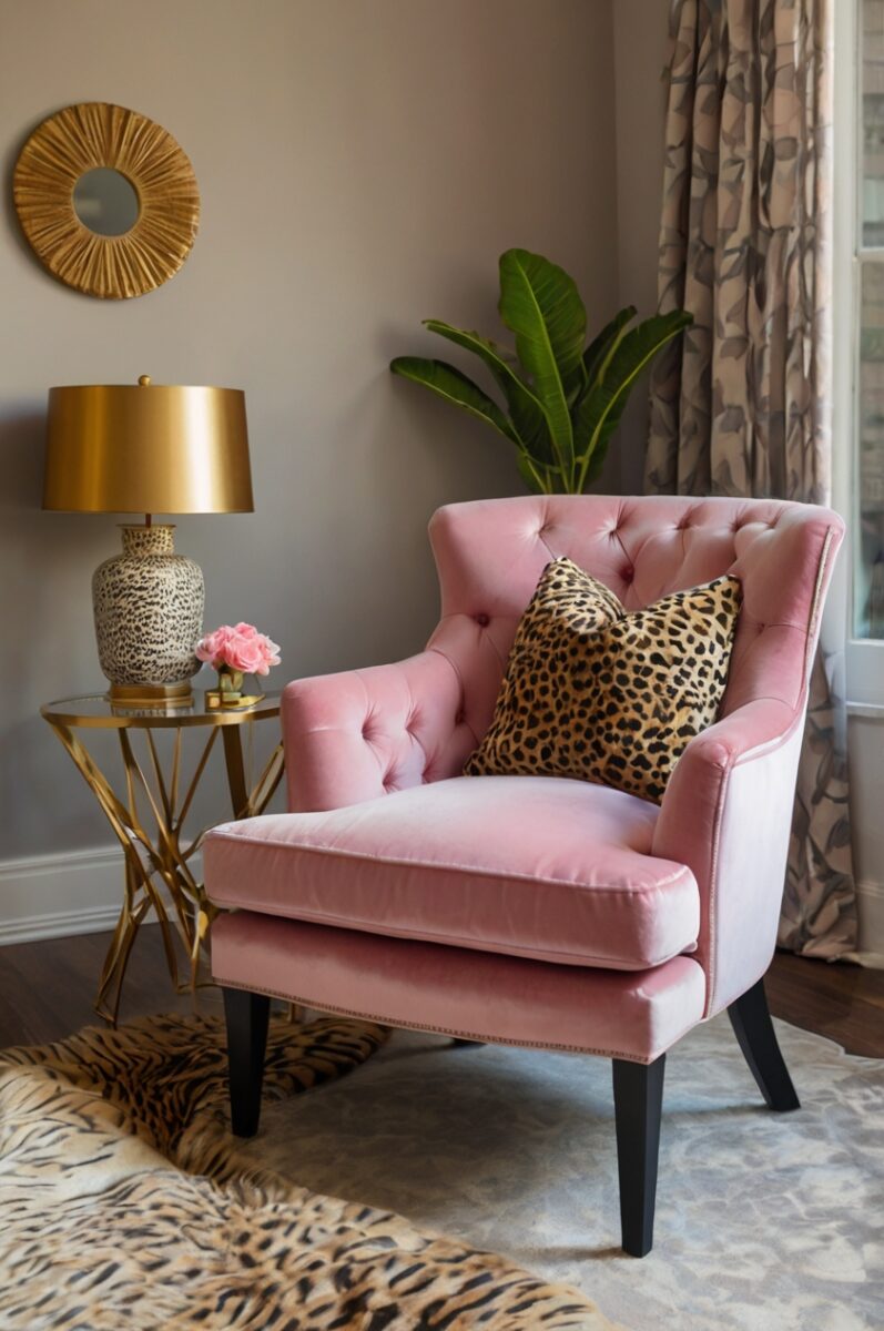 🏡 Start Creating FREE →Pink Velvet Chair with Cheetah Throw Pillow