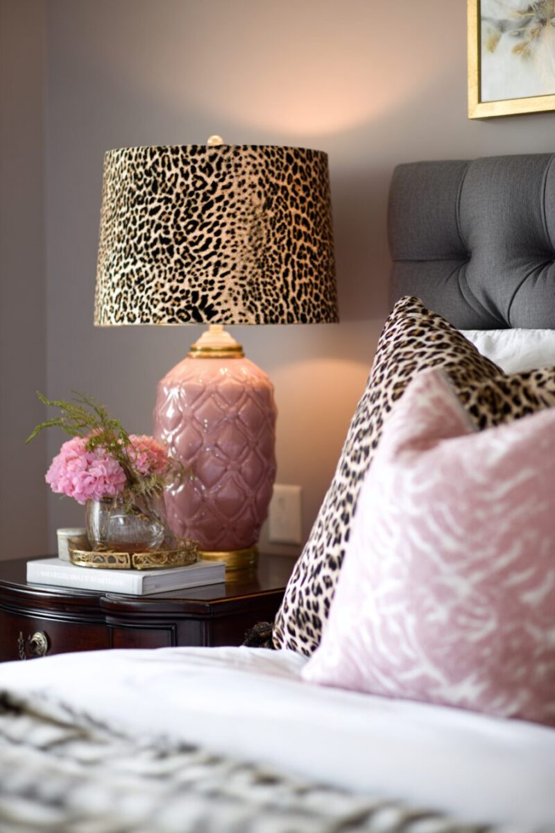 Transform your bedroom’s ambiance by incorporating cheetah print lampshades that cast beautiful patterns while serving as stylish accent pieces throughout the space.