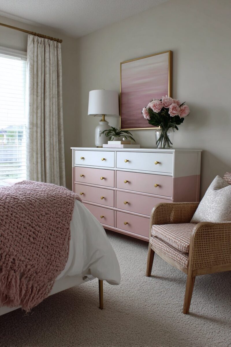 Transform ordinary white furniture into stunning statement pieces by adding pink details through strategic two-tone painting techniques that create custom looks on any budget.