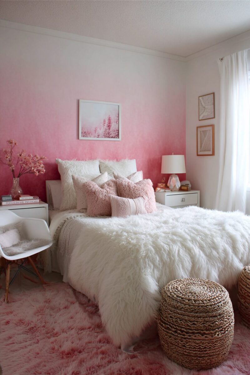 Start with white paint at the ceiling and gradually blend in more pink as you work your way down, creating a sunset-like effect that’s absolutely breathtaking.
