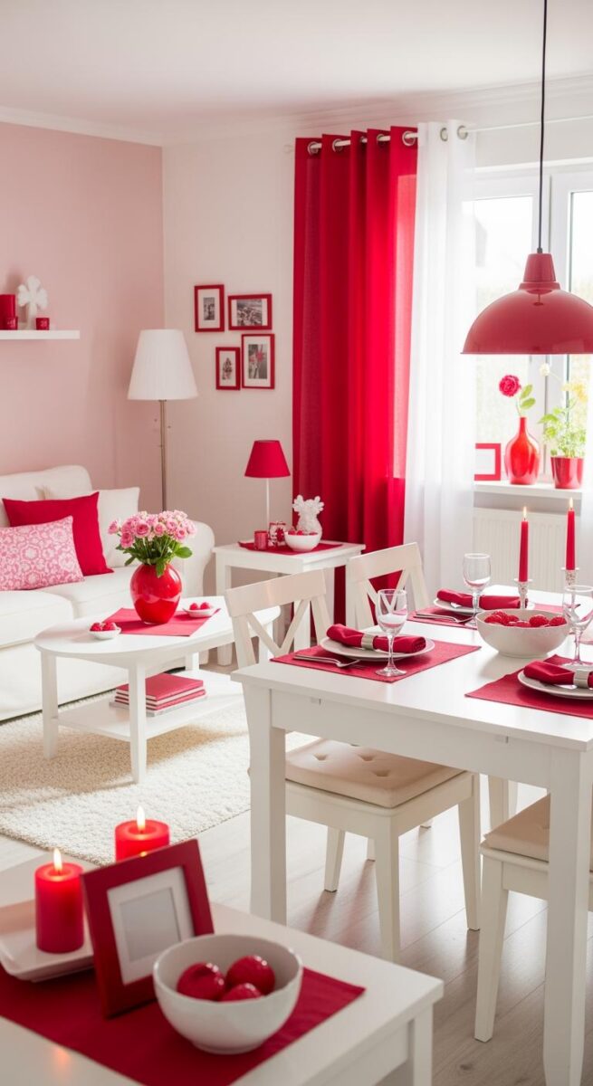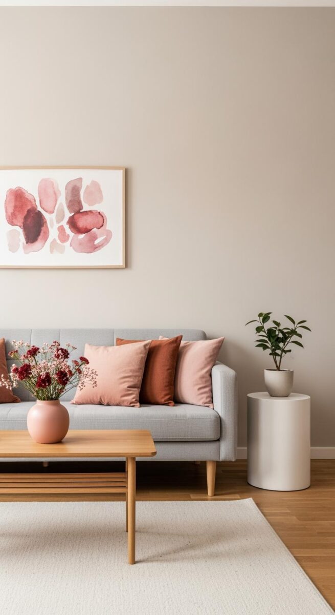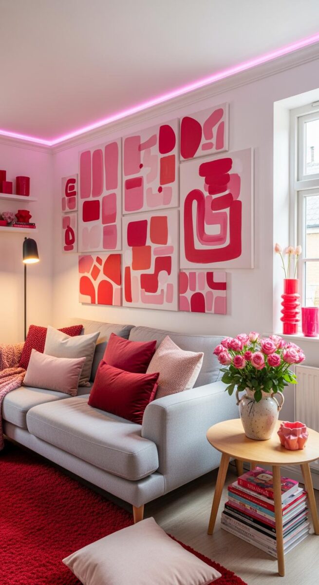 I always start with whites, grays, or soft beiges as my base, which creates a calming backdrop that lets pink and red accents pop without overwhelming the space.