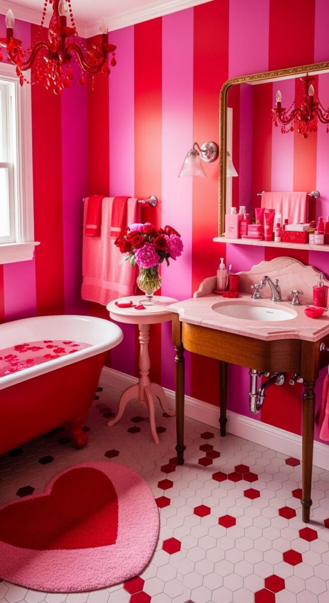 If you’re renting or can’t paint, try a pink shower curtain or red storage baskets.