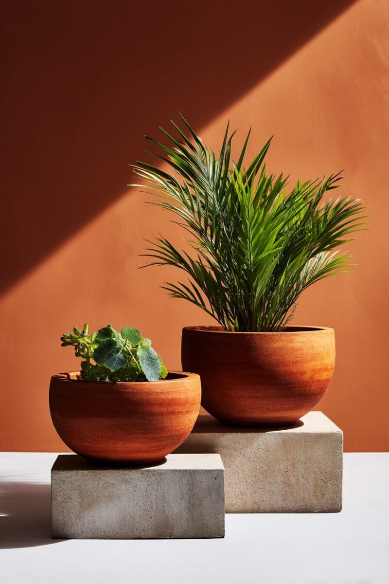 In cooler climates, be mindful that terracotta can crack during freeze-thaw cycles, so either bring special pieces indoors during winter or invest in frost-resistant terracotta specially formulated for year-round outdoor use.