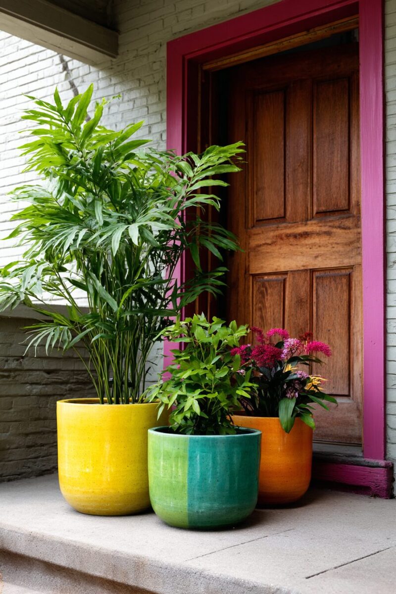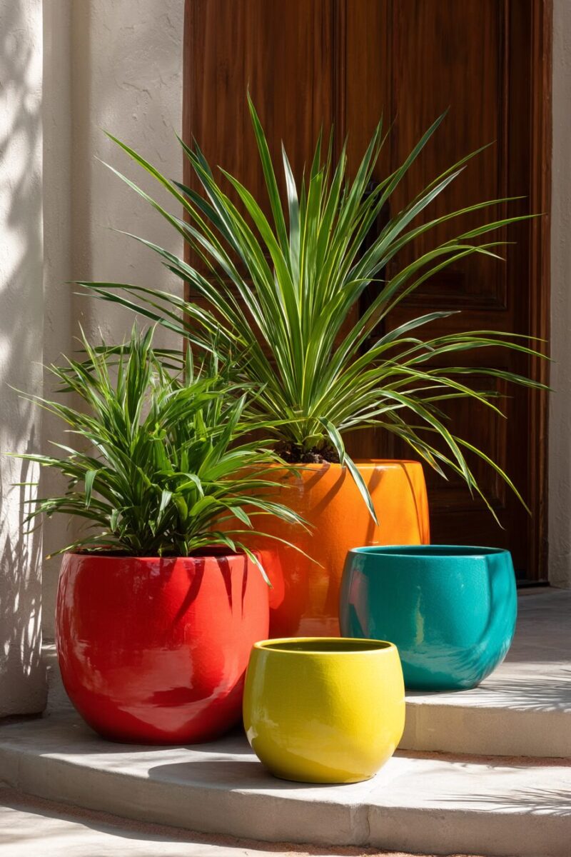 Unlike subtle container options, brightly colored ceramics make an unapologetic style statement, creating focal points that anchor your entire porch design.