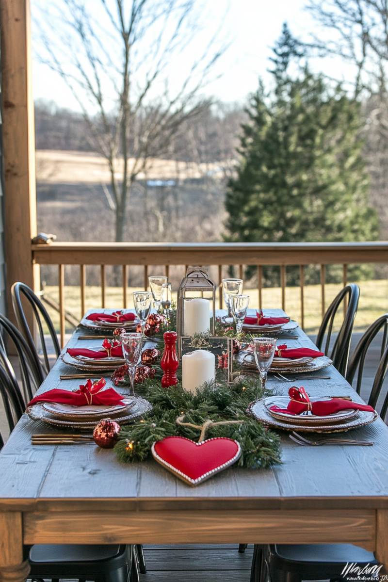 Use a burlap runner and scatter heart confetti for an extra festive touch.