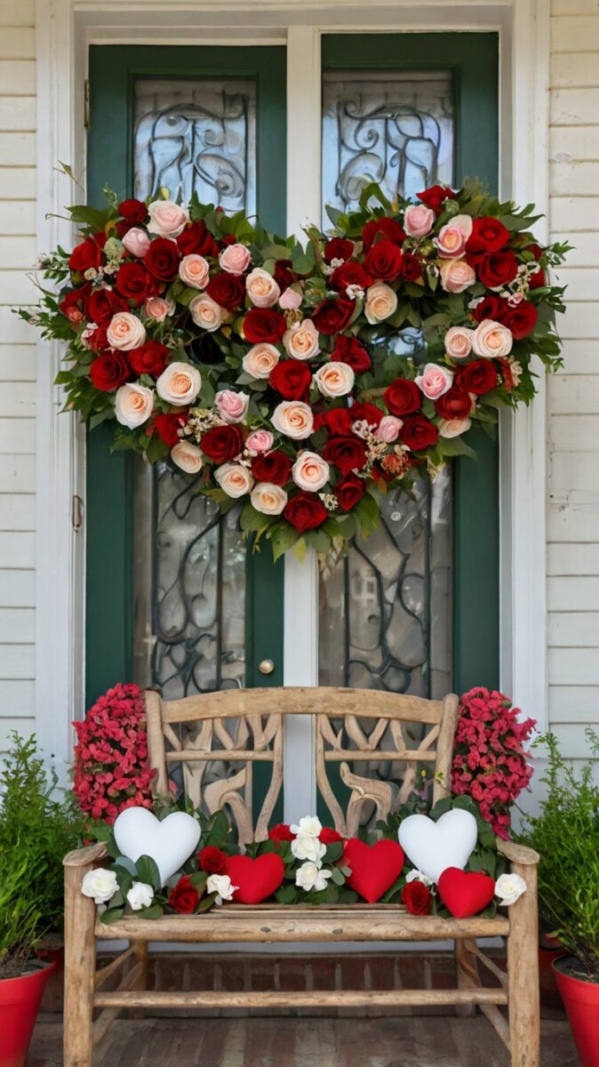 Hang twinkling curtain lights above and display sweet signs that read “Cupid’s Getaway” or “Be Mine.” For extra romance, sprinkle rose petals around the swing area.