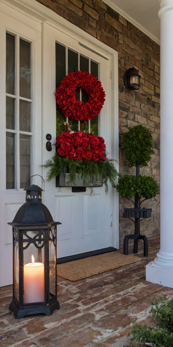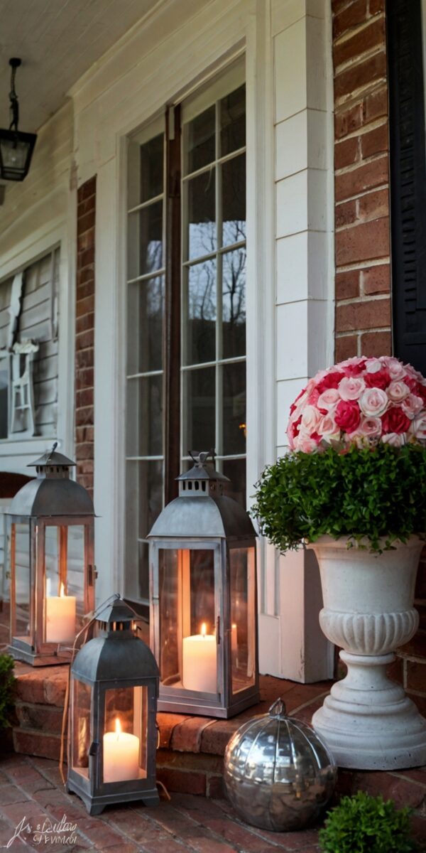 Placing lanterns with LED candles along porch steps or next to your doormat creates a cozy glow.