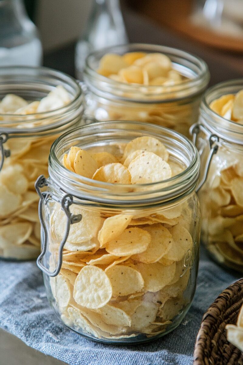 For parties, pre-portion chips into smaller individual mason jars that guests can grab without contaminating the whole batch.