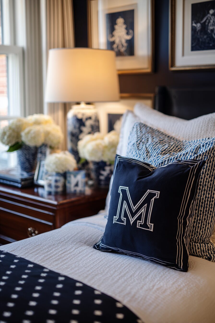 Adding monogrammed accessories to your preppy bedroom is like signing your name on a piece of art – it makes the space uniquely yours while maintaining that sophisticated, old-money aesthetic.