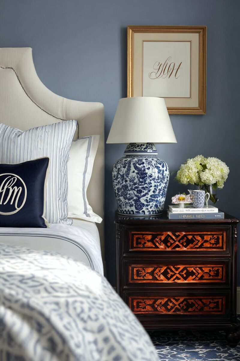 You can build your entire bedroom around this navy and white combination, then add accent colors like hunter green, soft pink, or sunny yellow to create personality and warmth.